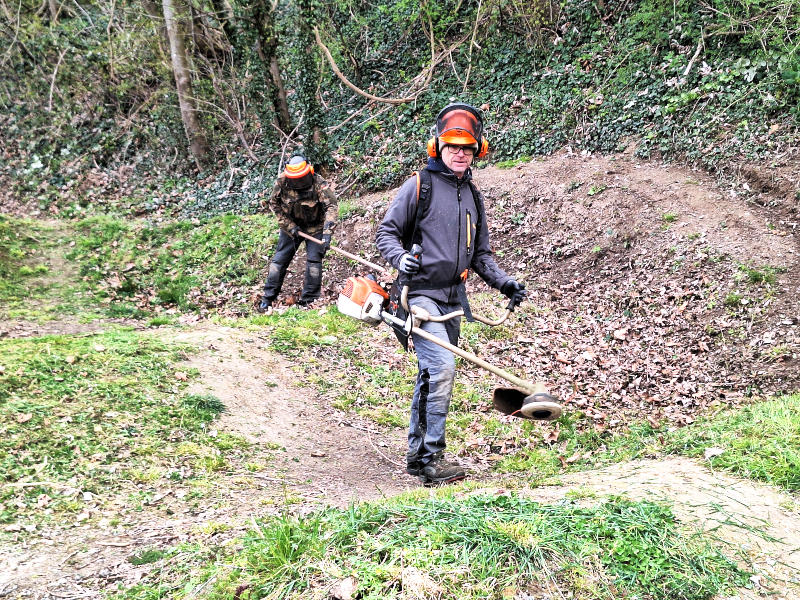 Im Mittelpunkt der Arbeiten stand die Pflege und Instandsetzung des gesamten Geländes. Die Flächen wurden gemäht, sodass die Strecken wieder übersichtlich und sicher befahrbar sind. Zudem wurden die Trails sorgfältig ausgebessert, um den Fahrspaß zu erhöhen und gleichzeitig die Sicherheit zu gewährleisten. Ein besonderes Augenmerk lag auch auf den Holzrampen, die renoviert und wieder in einen einwandfreien Zustand versetzt wurden.